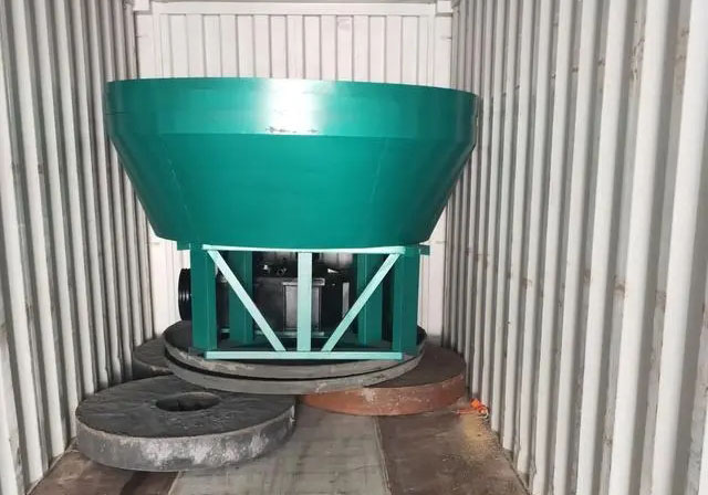 The equipment is mainly composed of power device, frame, water basin,roller, roller and other components, using wheel grinding mode: The ideal motor drives the power to the reducer, and under the drive of the reducer, the torque is transmitted to the upper horizontal shaft through the vertical shaft, and then transmitted to the roller wheel through the pull rod installed at both ends of the horizontal shaft, so that the roller wheel generates driving force and rotates counterclockwise along the horizontal direction of the horizontal shaft; When working, the roller can not only revolve around the large vertical shaft of the wet roller, but also rotate around the central axis of the roller wheel, and the roller plate is fixed. The added ore material is subjected to extrusion pressure brought by the weight of the roller itself in the mill, and the huge friction generated by the roller rotation and the roller plate is completely crushed after repeated extrusion, kneading and grinding.